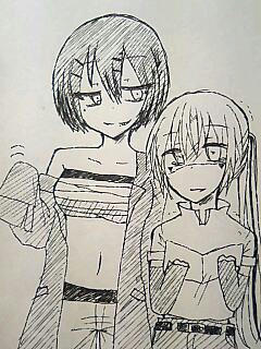 添付はばんぷの“ふぁいあさいん”イメージで描いたセツとコウミ。